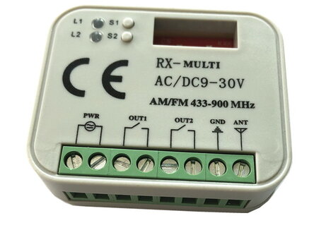 Univerzálny prijímač 433-900Mhz, dokáže sa naučiť pevné kódy a niektoré plávajúce kódy ovládačov známych značiek.
