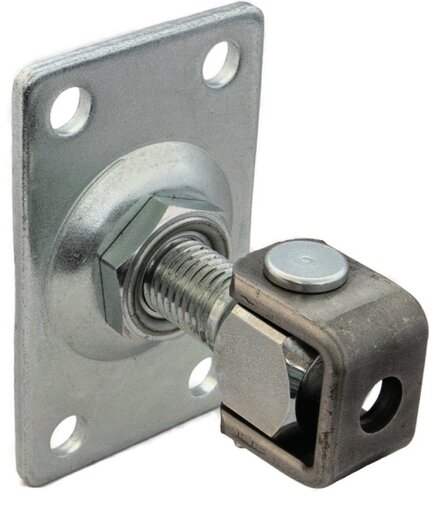 Pánt pre krídlové brány s regulovateľnou platňou pre murované a kovové stĺpiky.