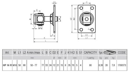 HP 16 R - pánt regulovateľný s platňou pre murované a kovové stĺpiky