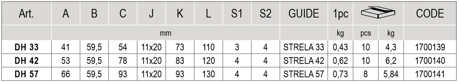 DH 57 - horný držiak šíny STRELA 57
