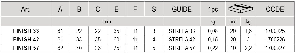 FINISH 57 - vnútorný doraz pre šínu STRELA