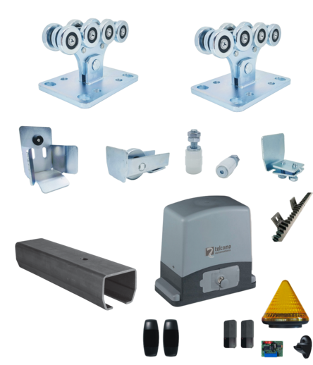 Kompletné riešenie pre posuvnú bránu do hmotnosti konštrukcie 400kg. Všetko čo potrebujete na zhotovenie kvalitnej samonosnej posuvnej brány do max. šírky prejazdu 4,5m s kvalitným pohonom od firmy Telcoma.